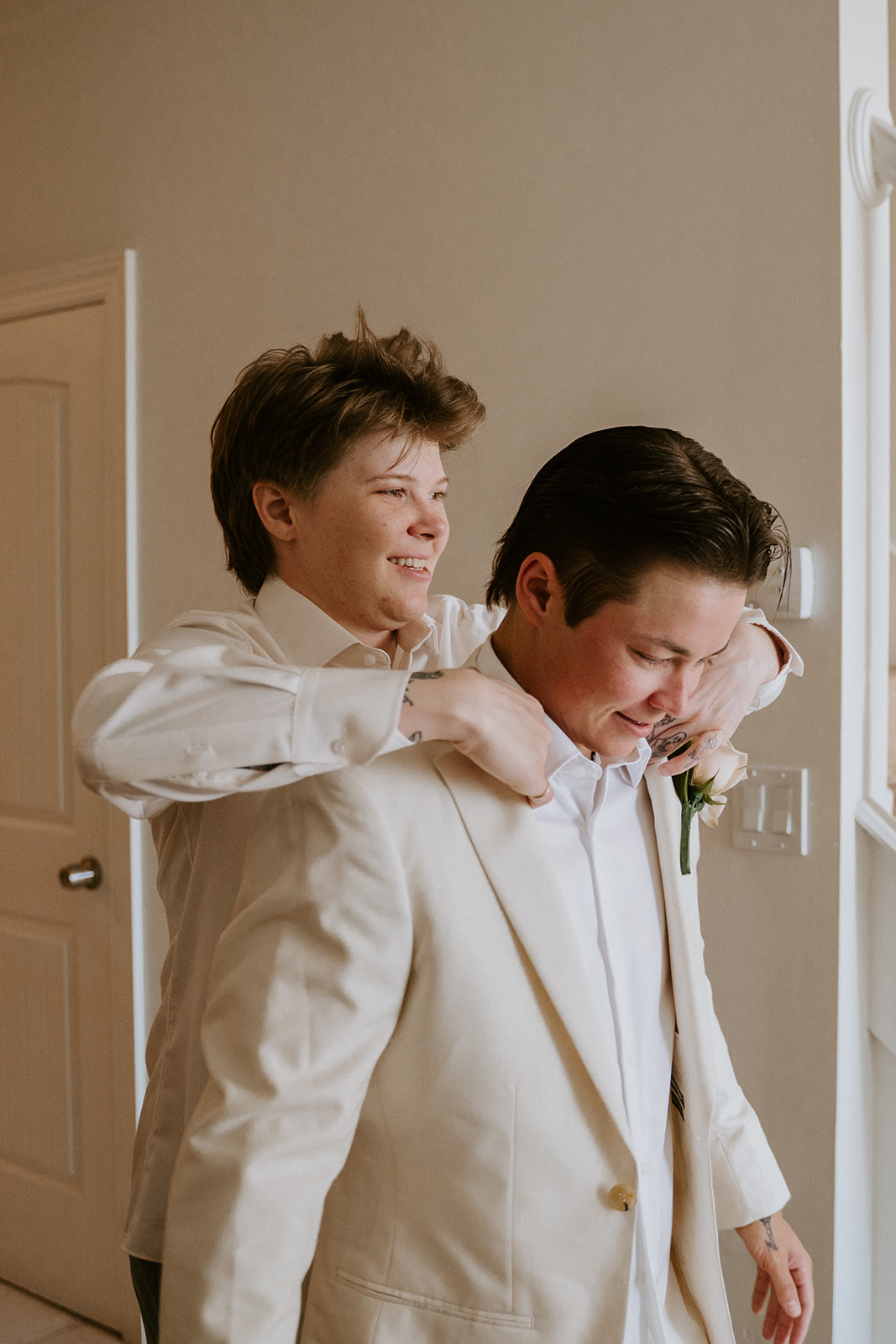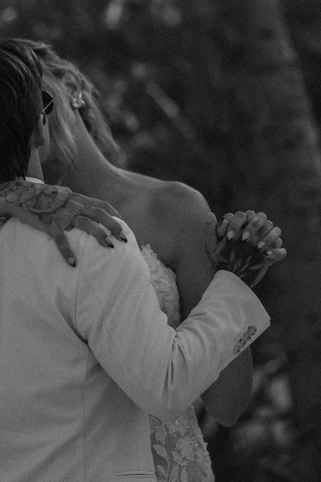 After exchanging vows, they celebrated with a round of shots alongside all of their guests before sealing them with the sweetest kiss. It was a joyful, spontaneous moment that perfectly captured the spirit of the day.