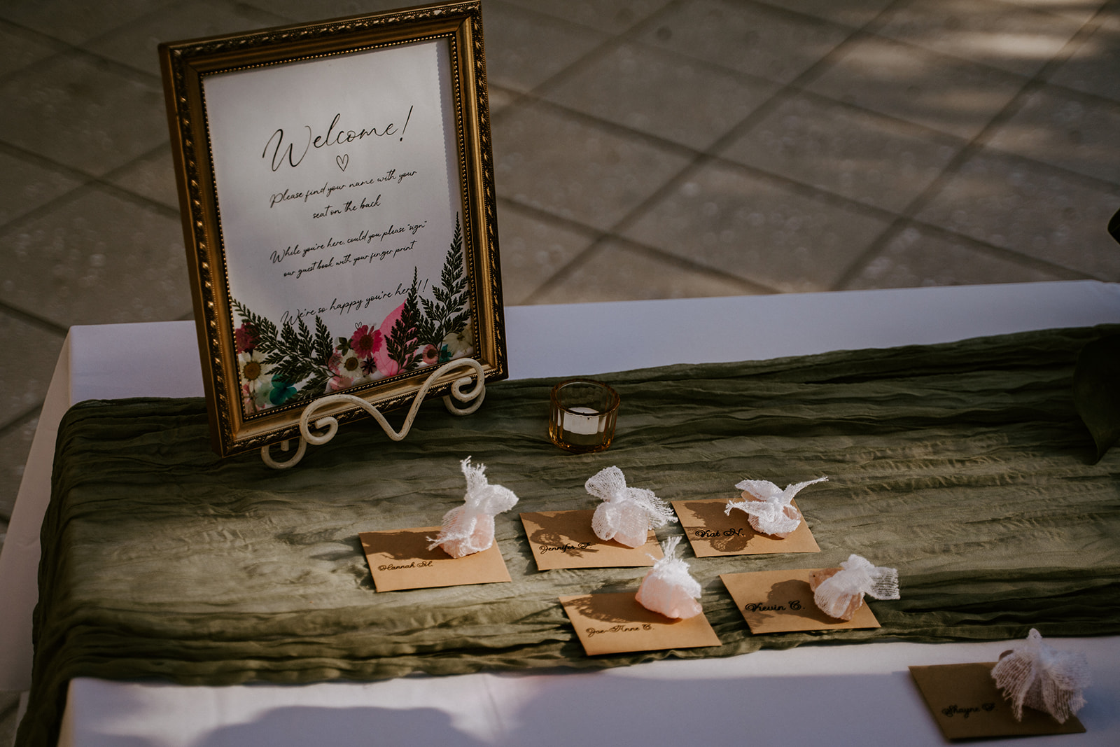 Guests signed the guest book in one of the most creative ways I’ve seen: dipping their fingertips into different colored inks and pressing them onto a drawing of a tree. It was artistic, interactive, and perfectly fitting for their creative spirits.