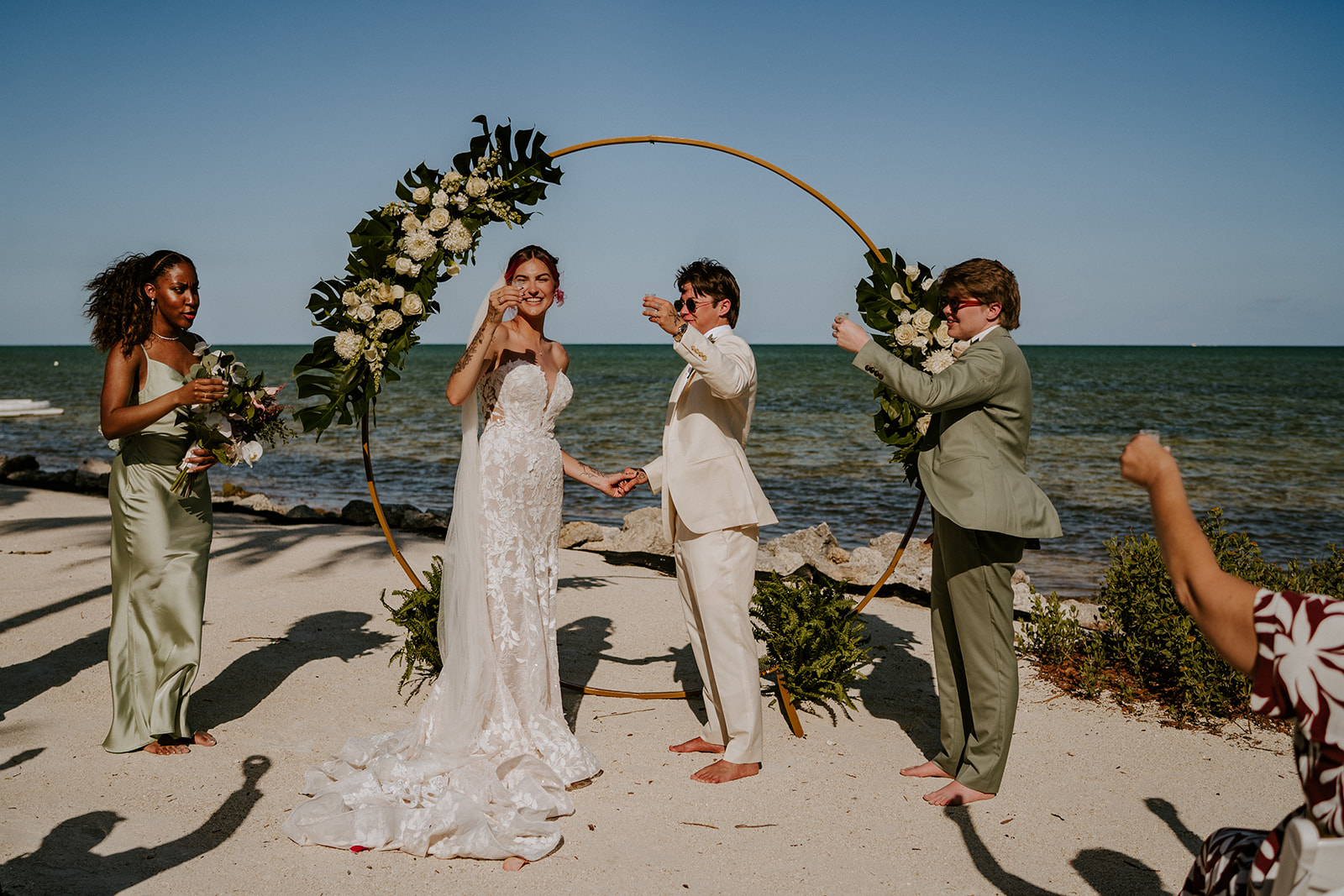 There’s a reason so many couples are drawn to a destination wedding in the Keys. Islamorada offers tropical beach destination wedding vibes without feeling overwhelming or overdone. The ocean breeze, swaying palms, and endless horizon naturally create a sense of calm that allows couples to truly be present.