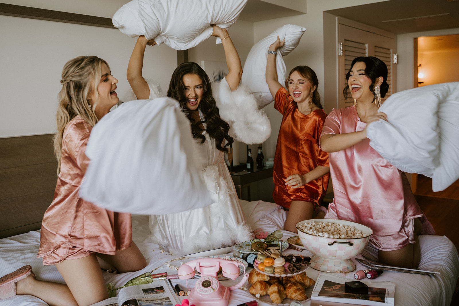 With pastries, popcorn, lipstick, magazines, custom newspapers, and fun props, the morning felt relaxed, joyful, and full of genuine connection. Those details weren’t chosen for photos alone. They reflected real memories and real relationships, which made the images feel authentic and alive.