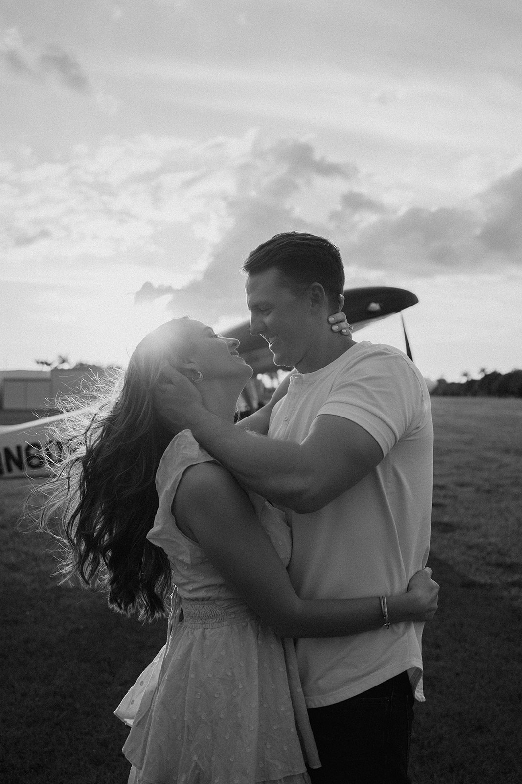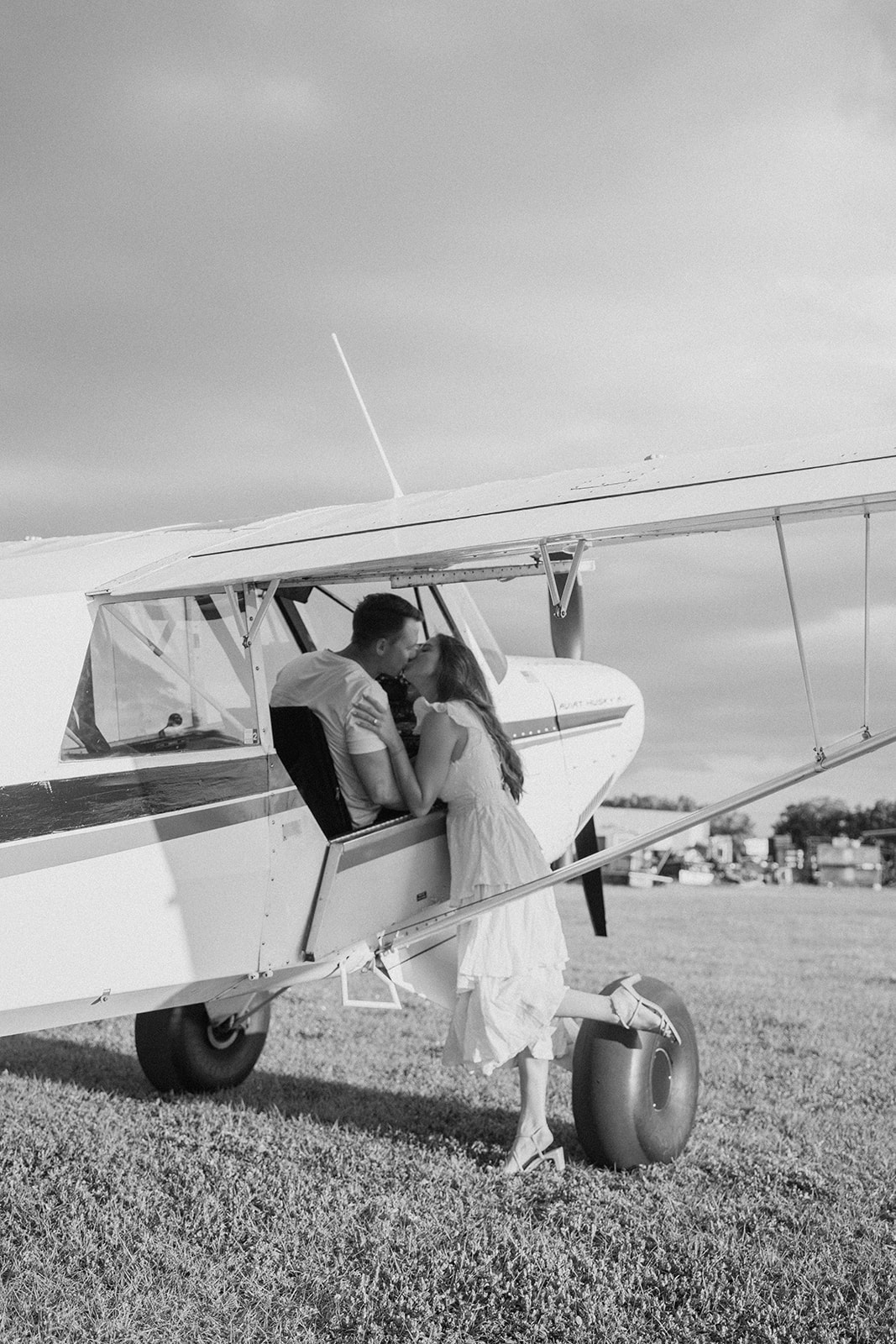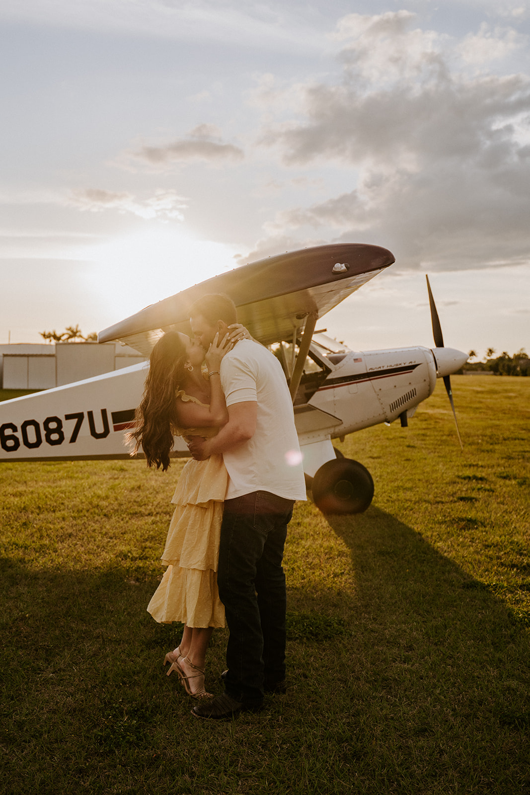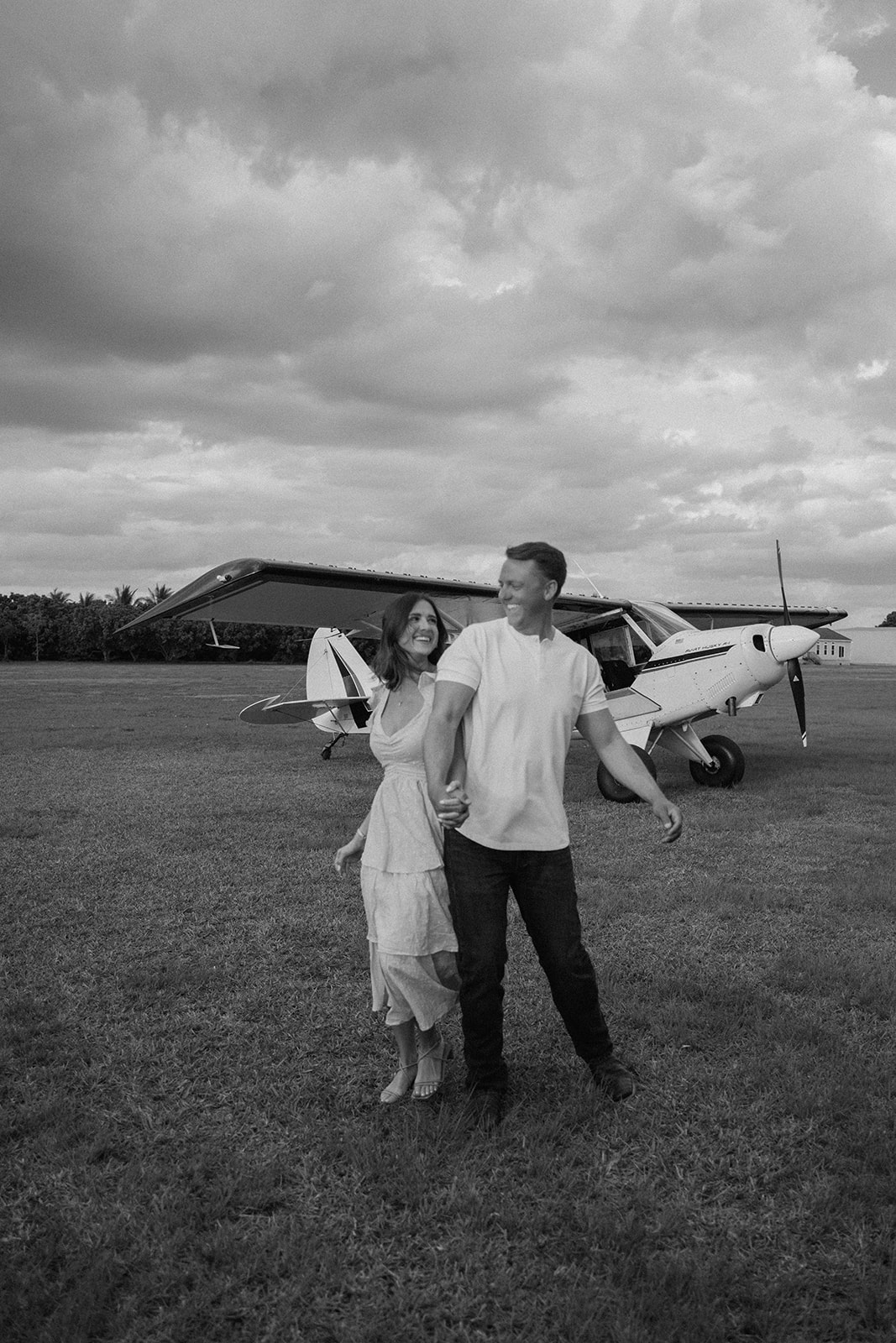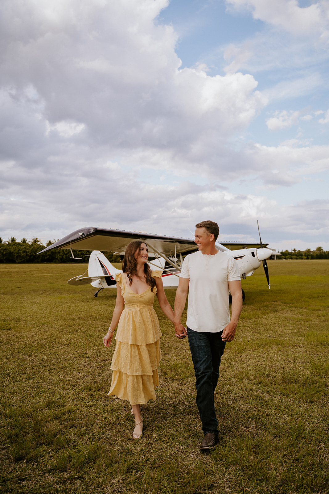 Chase is a pilot, so when Macie and Chase started planning their engagement photos, it felt natural to include the airplane he flies. Instead of choosing a typical engagement session location, we met in a quiet field in Homestead where the plane is stored.