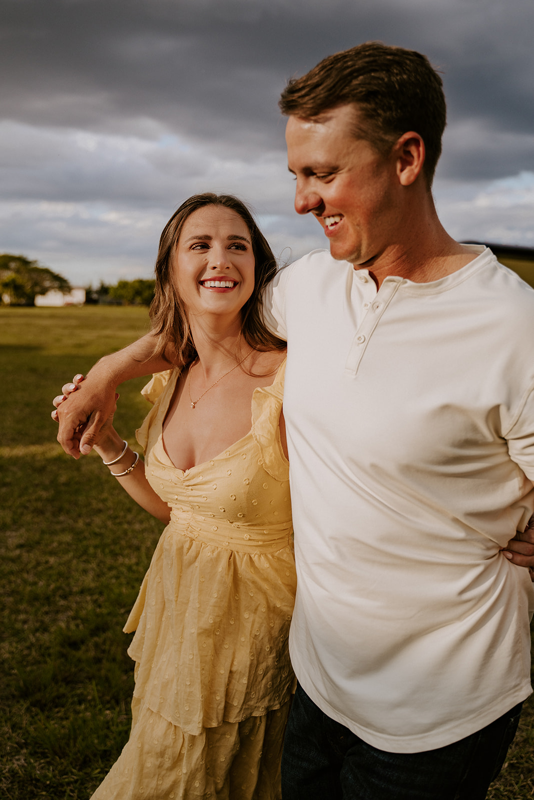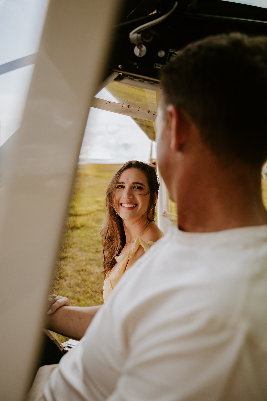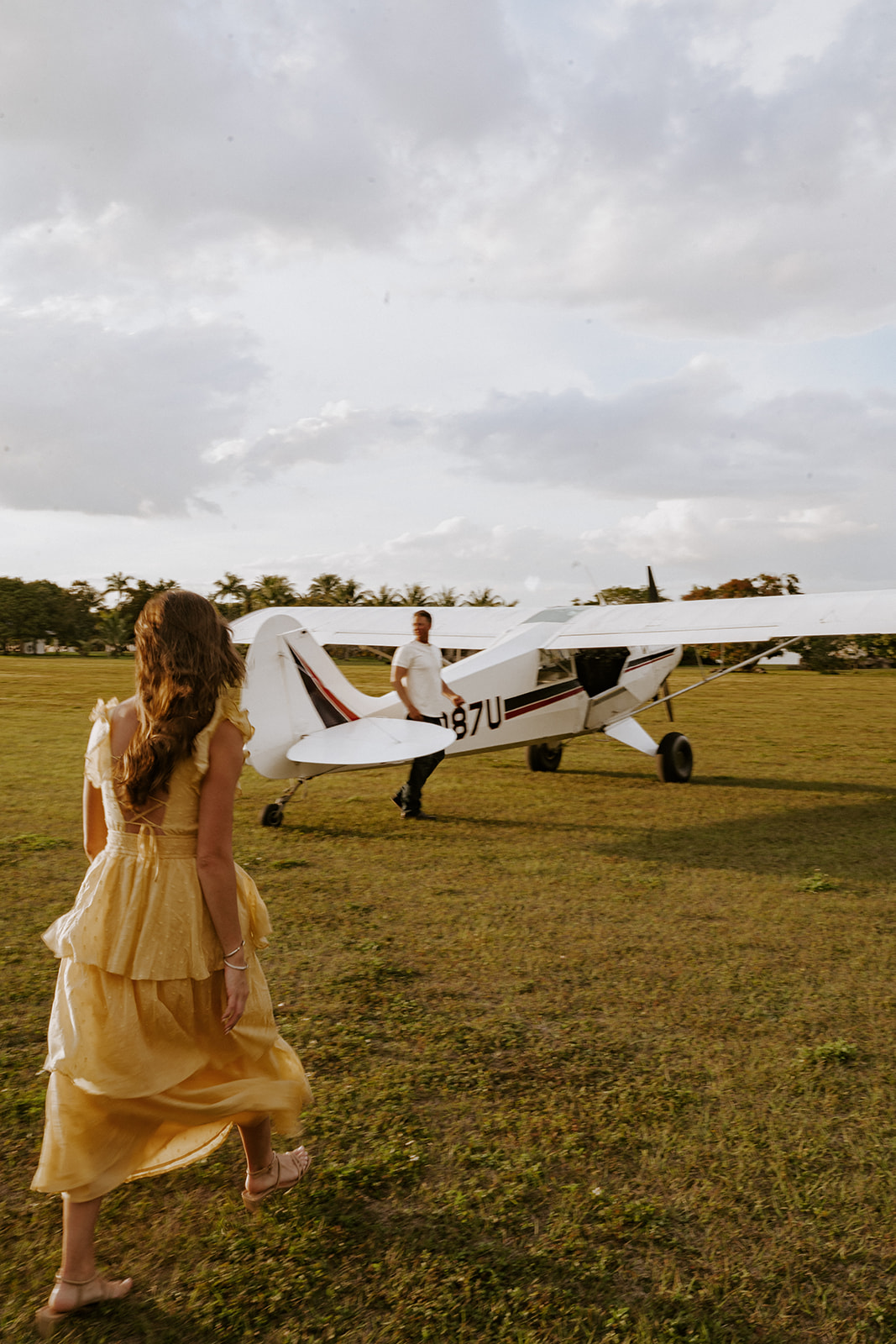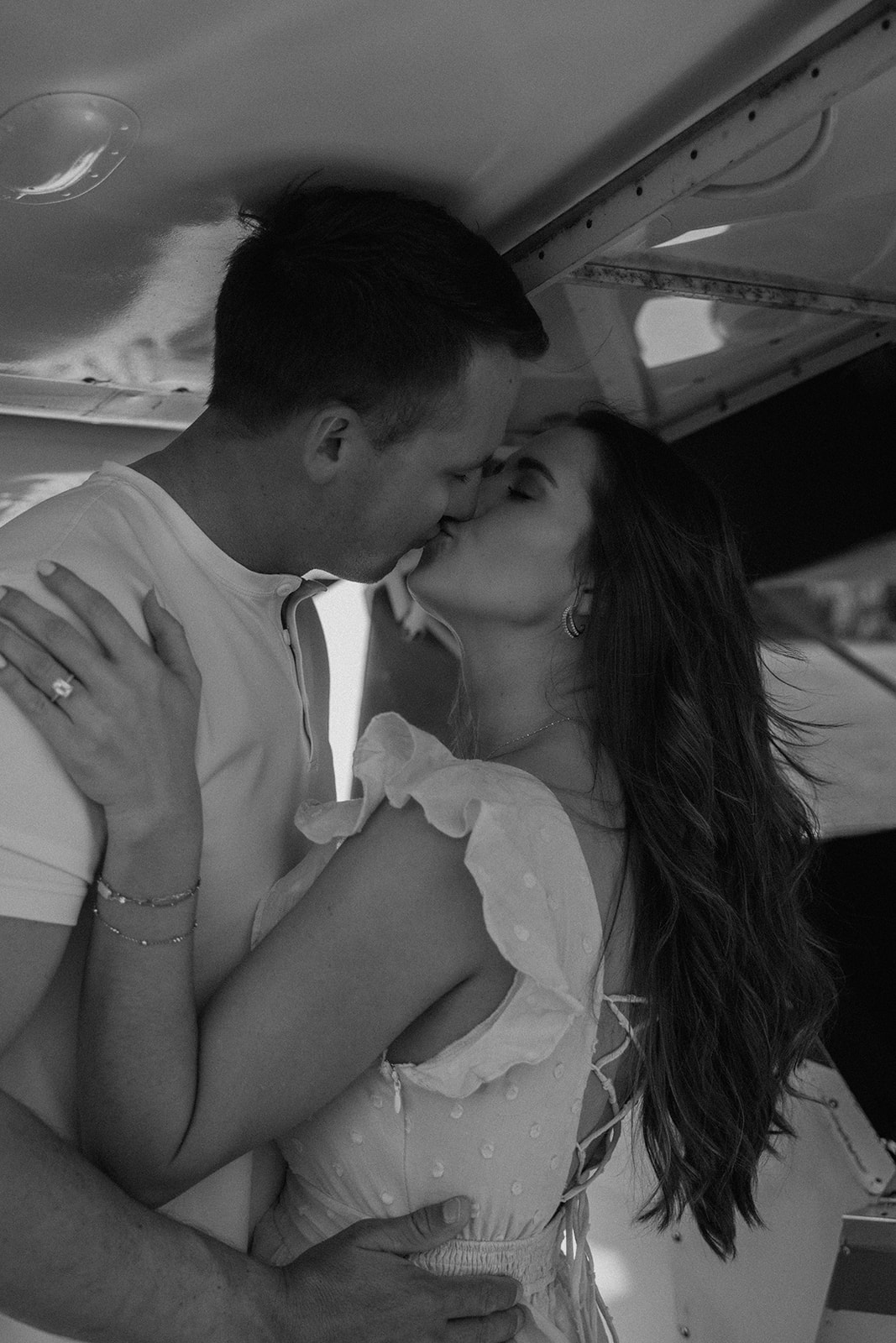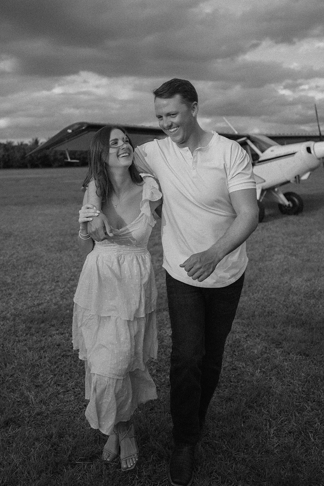 Chase is a pilot, so when Macie and Chase started planning their engagement photos, it felt natural to include the airplane he flies. Instead of choosing a typical engagement session location, we met in a quiet field in Homestead where the plane is stored.