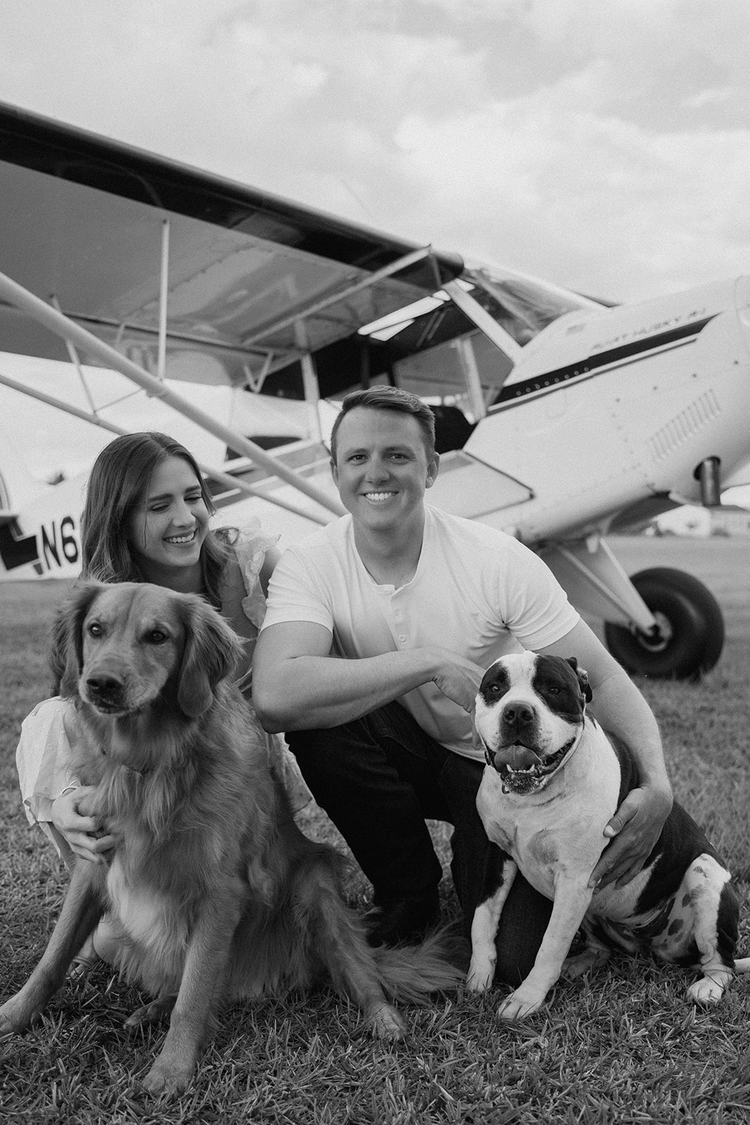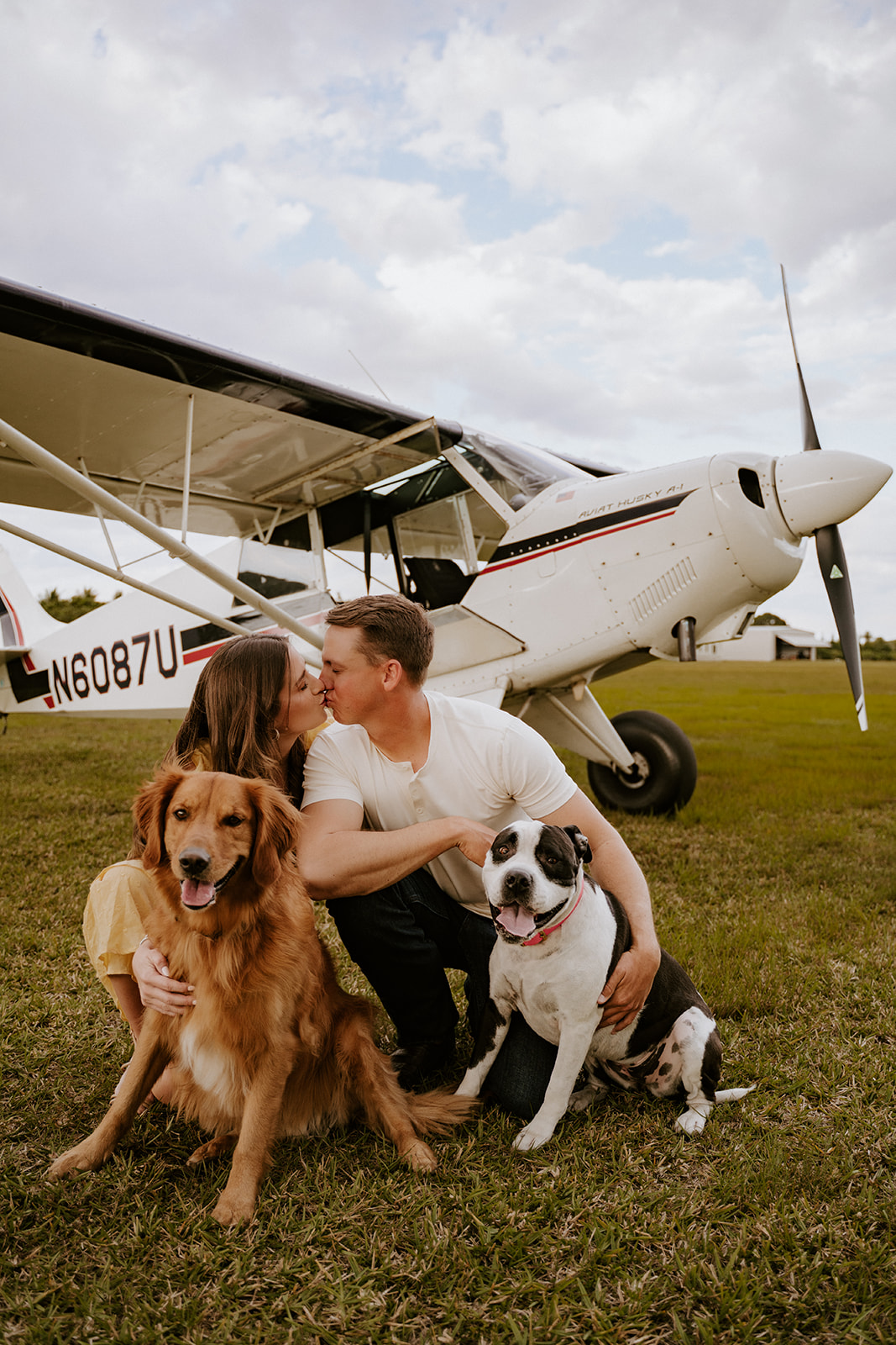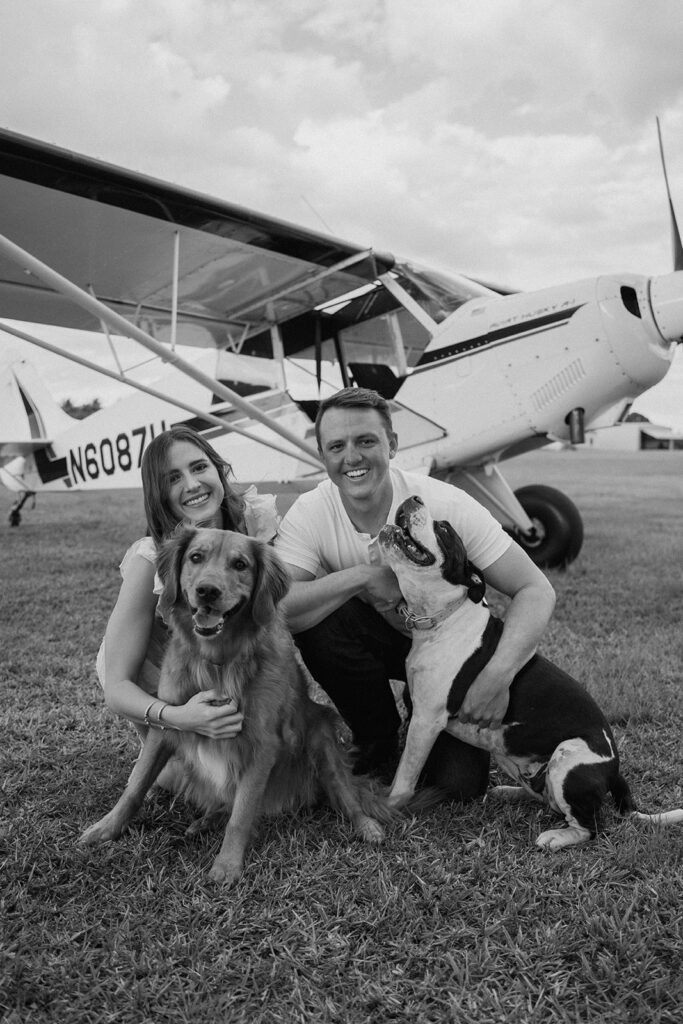 Macie and Chase’s airplane engagement session is a perfect example. By choosing a location connected to their hobbies and including their dogs, they created photos that feel completely personal.